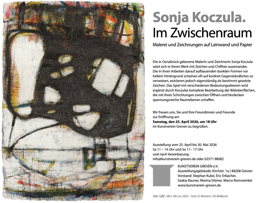 Zusätzliche Öffnungszeiten nach Anmeldung unter info@kunstverein-greven.de.